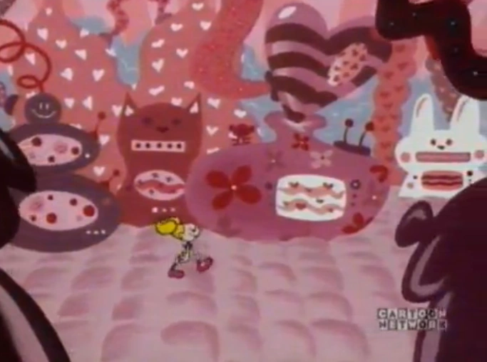 In the episode "A Dee Dee Cartoon", Dee Dee is shown to possess her own lab in her room which appears bouncy, pink and full of other girly things that she enjoys and is run by a male-voiced computer with a British accent. Similarly to Mandark, Dee Dee accesses her lab through a keypad, but has an added dance measure. Unlike "Dexter's Debt", Dee Dee's lab appears in this episode with its own design. Inside the lab, Dee Dee is shown to have tea parties and makes sweets similarly to how Dexter makes his inventions. Like Dexter, she also has a giant robot named the Power Princess Unicorn and uses it to save the world from meteors.